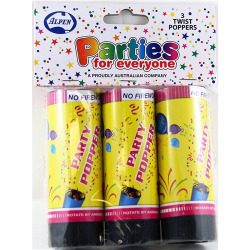 Alpen Parties For Everyone Party Poppers Twist Release Foil Streamers Pack Of 3