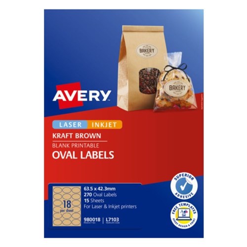 • Avery Oval Labels 63.5 x 42.3mm L7103 Kraft Brown 270 Labels.