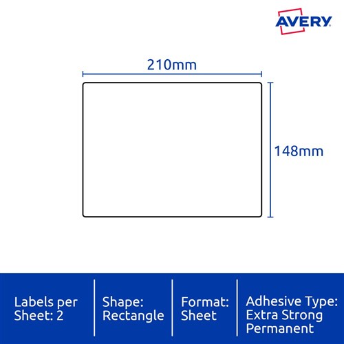 Avery Identification Laser Ultra Resistant White L7916 210x148mm 2UP 20 Labels