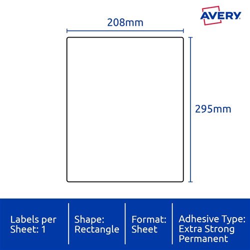 Avery Identification Laser Ultra Resistant White L7917 208x295mm 1UP 10 Labels