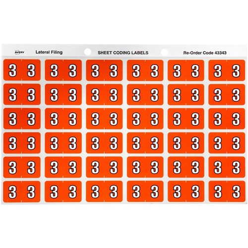 Avery Numeric Coding Label 3 Side Tab 25x38mm Dark Orange Pack Of 180