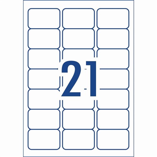 • Size: 63.5x38.1mm 2100 labels, 100 sheets. 21 labels per sheet (21UP).