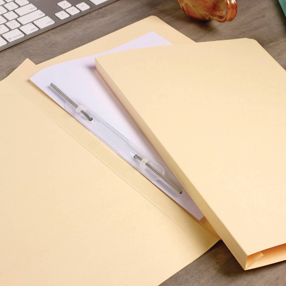 • Heavy weight file fitted with spiral spring coil fastener and pressure plate.