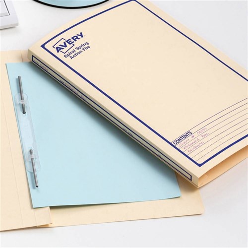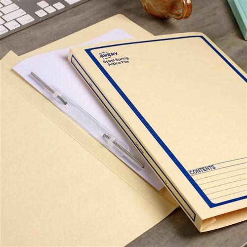 Avery Spiral Action File Foolscap Buff With Blue Print