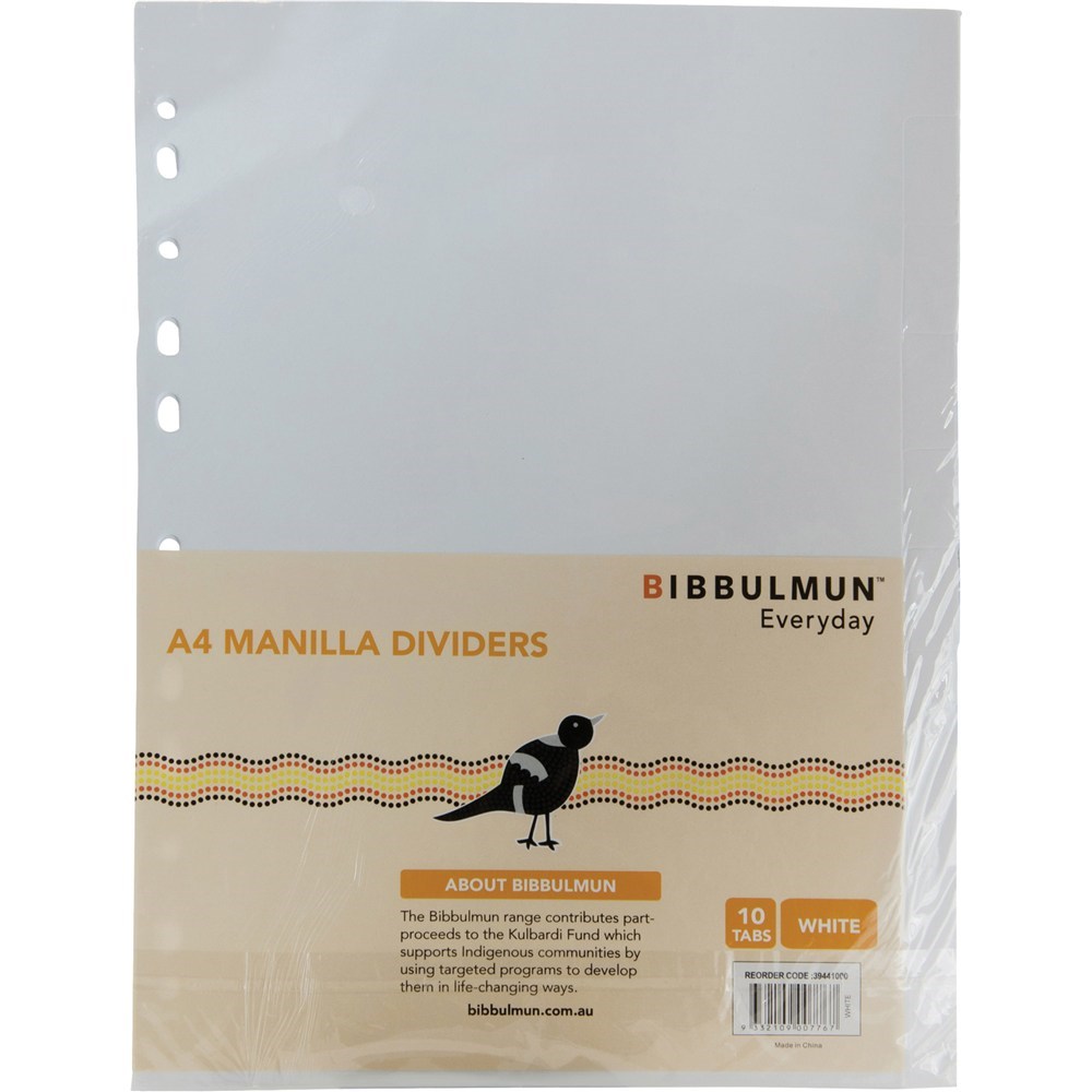Bibbulmun Manilla Divider A4 10 Tab White