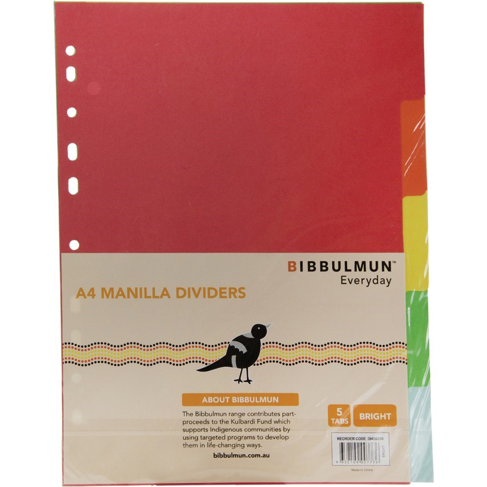 Bibbulmun Manilla Divider A4 5 Tab Plain Bright Colours