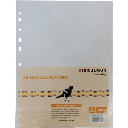 Bibbulmun Manilla Divider A4 5 Tab Plain White