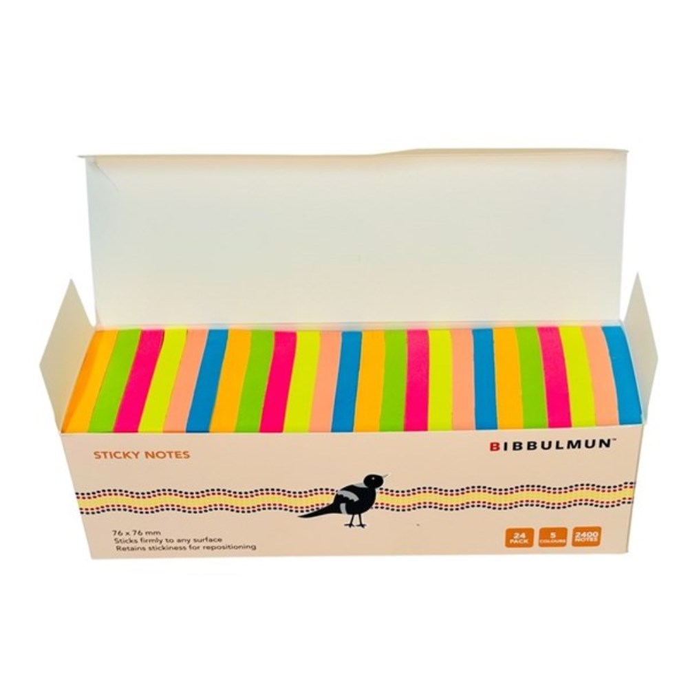 Bibbulmun Sticky Notes 76 x 76mm Assorted Bright Colours Pack Of 24