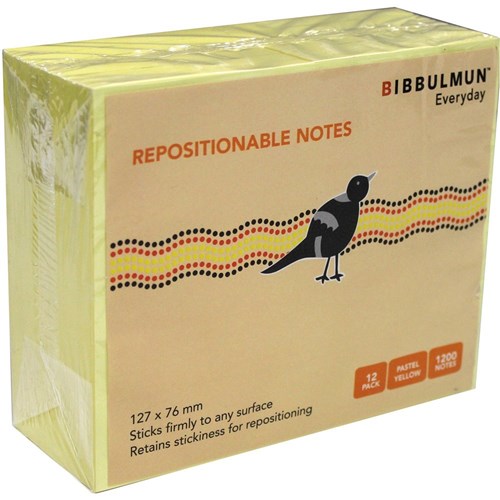 Bibbulmun Sticky Notes 76x 127mm Yellow 100 Sheets Pad Pack of 12