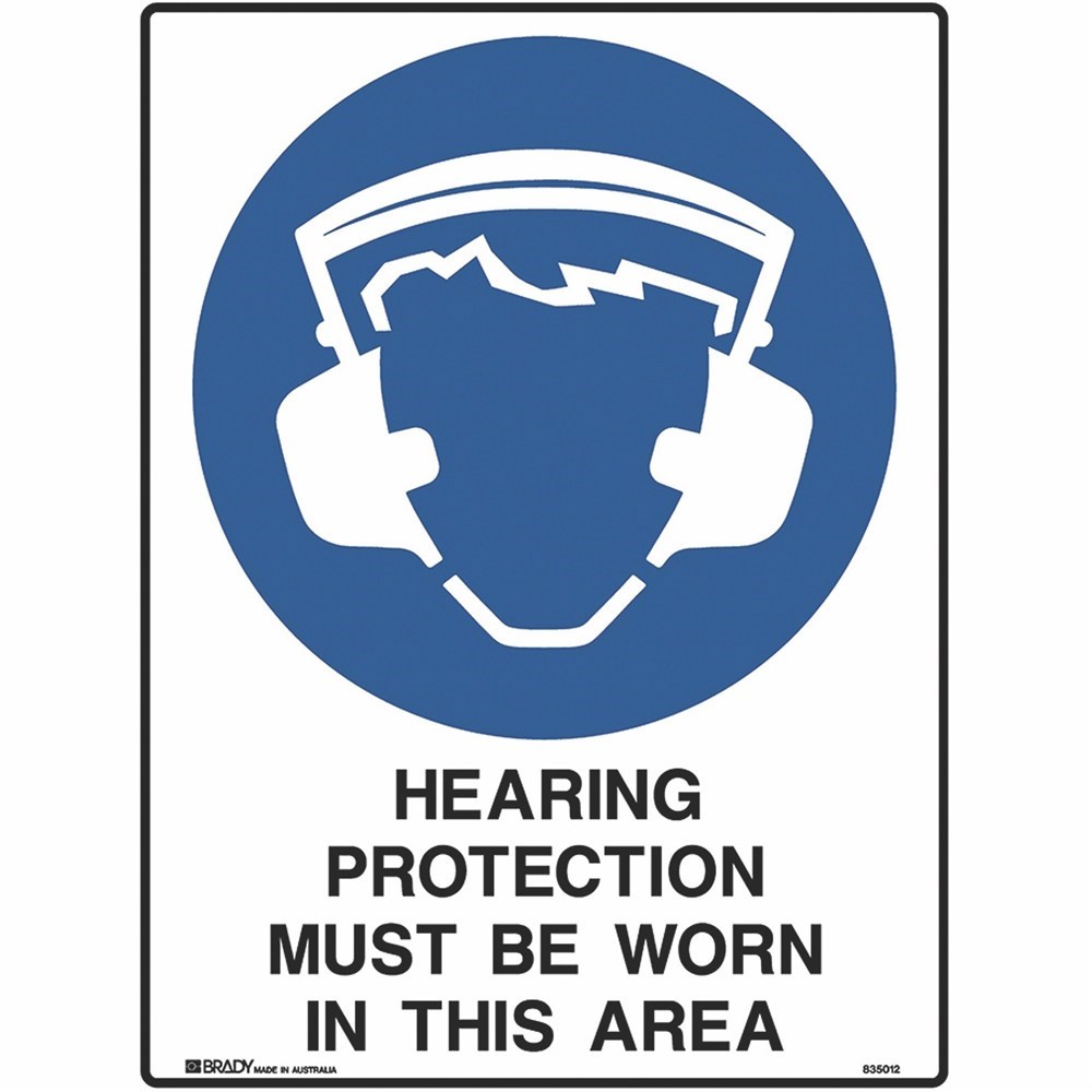 Brady Mandatory Sign Hearing Protection Must Be Worn 450W x 600mmH Metal White/Blue