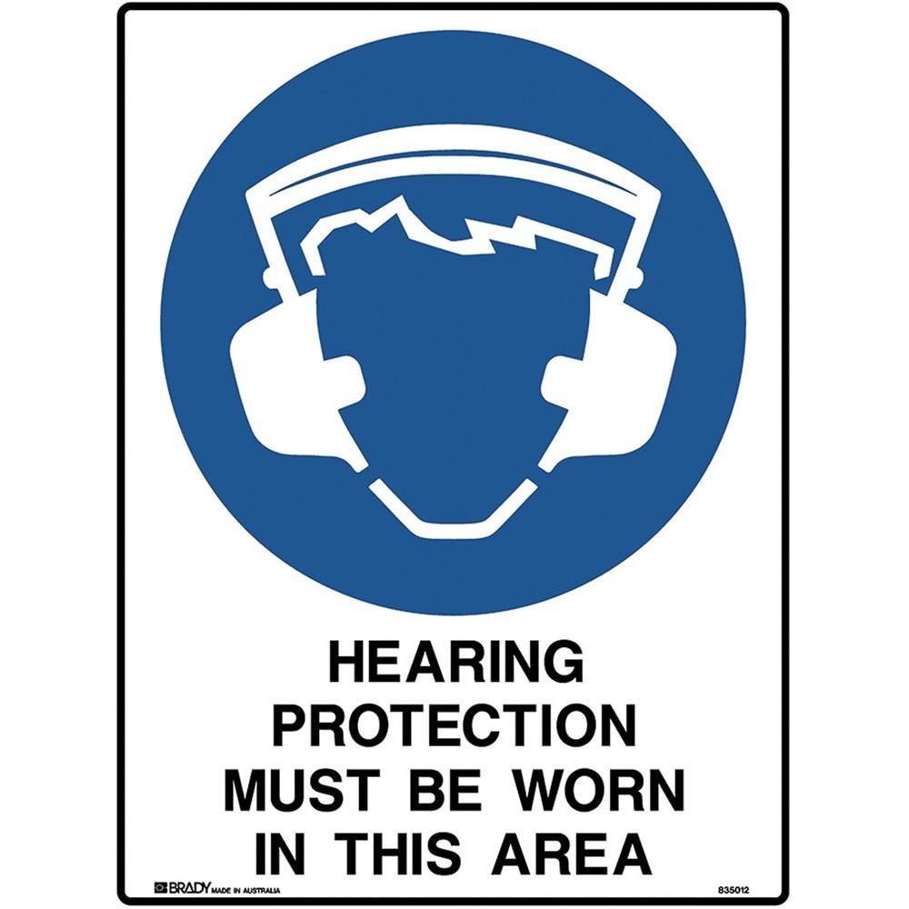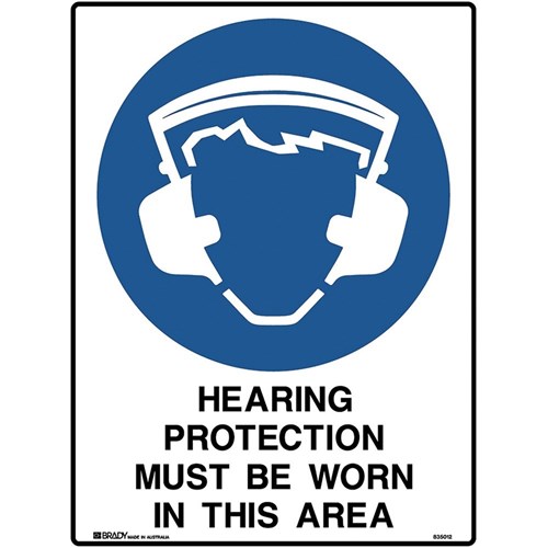 Brady Mandatory Sign Hearing Protection Must Be Worn 450W x 600mmH Poly White/Blue