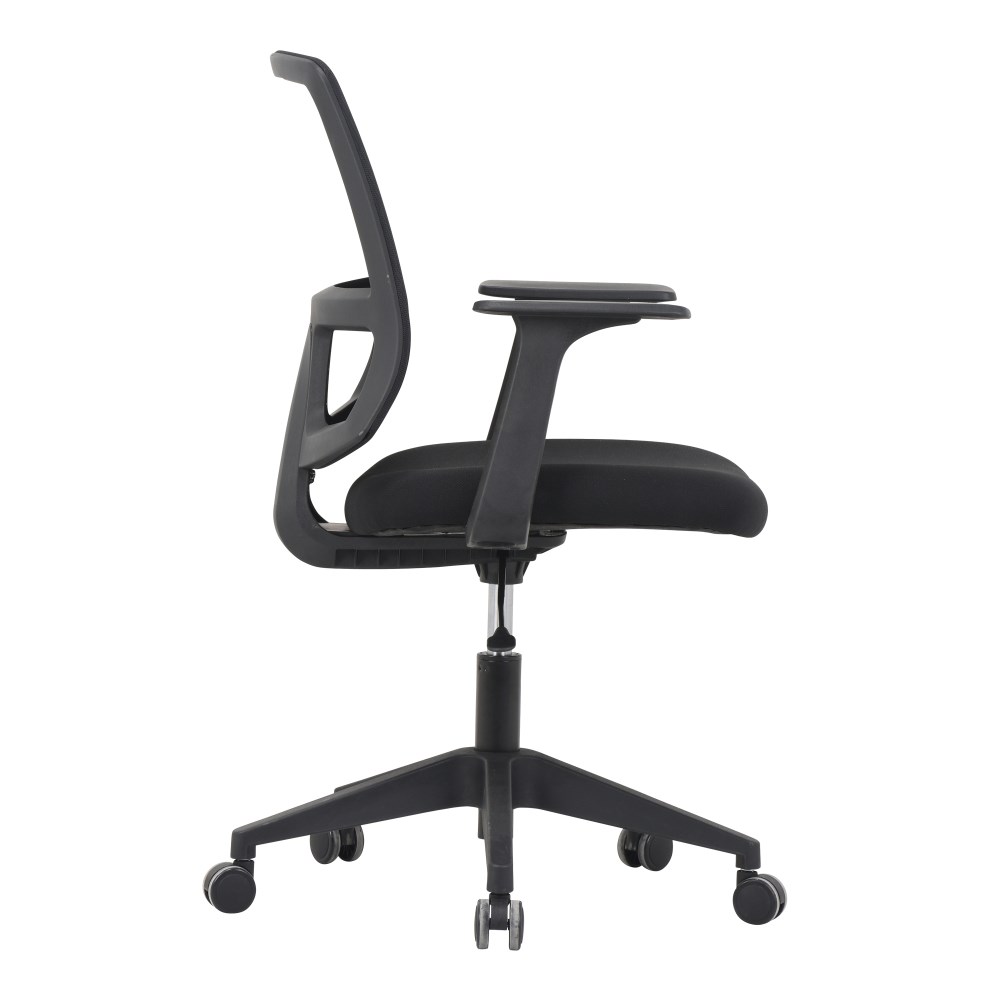 • Composition: Mesh back, upholstered seat and strong nylon 5 star base with 50mm nylon castors. Fixed armrests for extra ergonomic support.