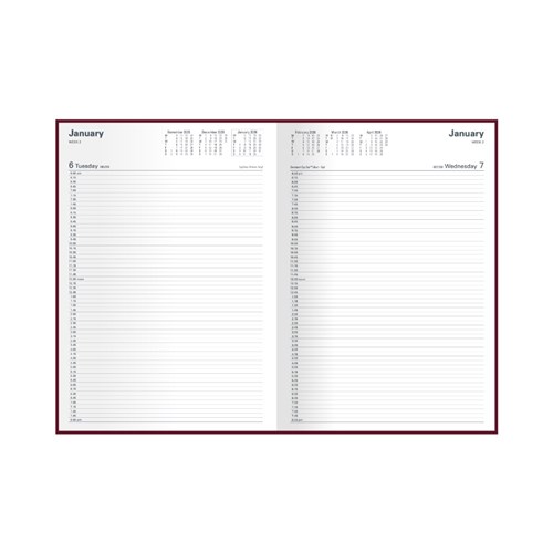 • Page layout include six month calendars, week counts, Julian day and times printed clearly down each page.