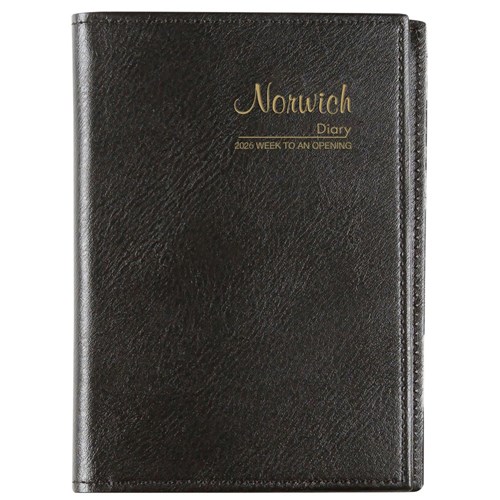 • Featuring a stylish flexible leather grain cover finished with the famous gold foil 'Norwich' logo, stitched edges and fine ivory paper.
