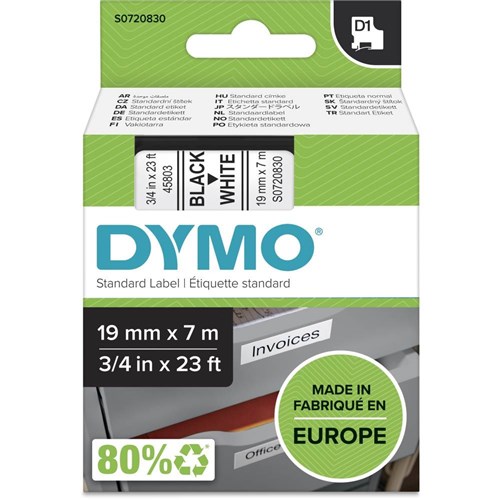 Dymo D1 Label Cassette Tape 19mmx7m Black on White