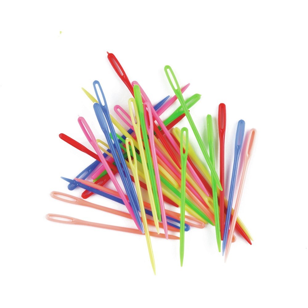 • Pack of 32 (75mm) multicoloured plastic needles.
