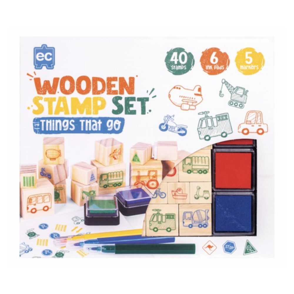 Educational Colours Wooden Stamp Set Things That Go