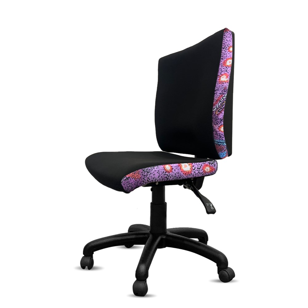 • A unique commercial fabrics designed by Andrea Adamson (Indigenous Artist) combined with K2 Black Fabric to upholster the chair.