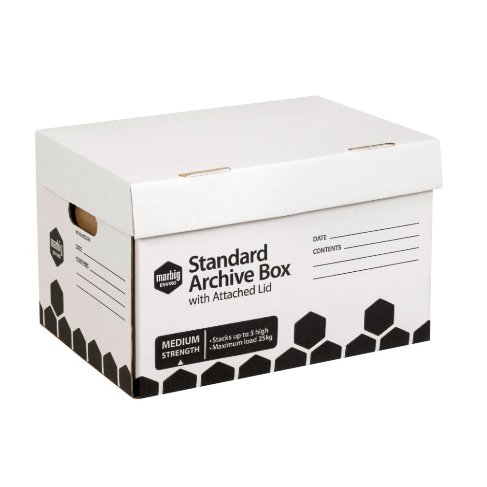 Marbig Enviro Standard Archive Box Hinged Lid 315W x 420D x 260mmH White