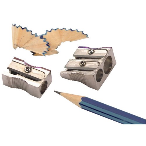 • Metal wedge-shape pencil sharpener.