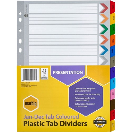 Marbig Plastic Indices & Dividers A4 Reinforced Jan-Dec Tab Multi Colour