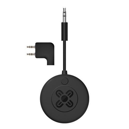 • The included 2-pin airline adaptor connects directly to seatback screens, converting the wired audio output into a wireless signal.