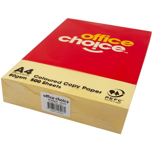 Office Choice Copy Paper Tinted A4 80gsm Yellow Ream of 500