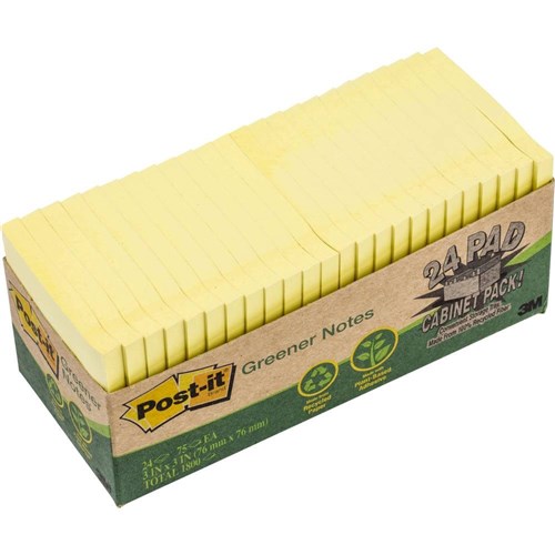 Post-It 654R-24CP-CY Notes 76x76mm Greener Recycled Cabinet Pack Yellow Pack of 24