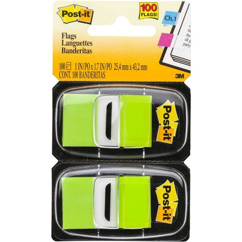 Post-It 680-BG2 Flags Twin Pack 25x43mm Bright Green Pack of 2