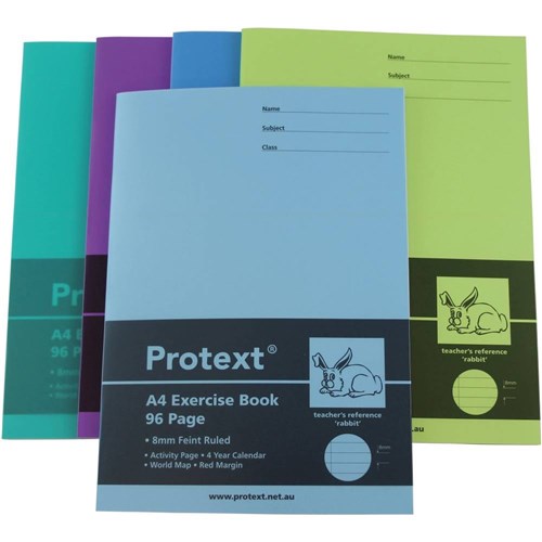 Protext Exercise Book A4 8mm Ruled 70gsm 96 Page Red Margin Rabbit