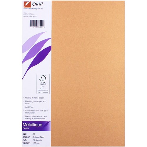 Quill Metallique Paper A4 120gsm Autumn Gold Pack of 25