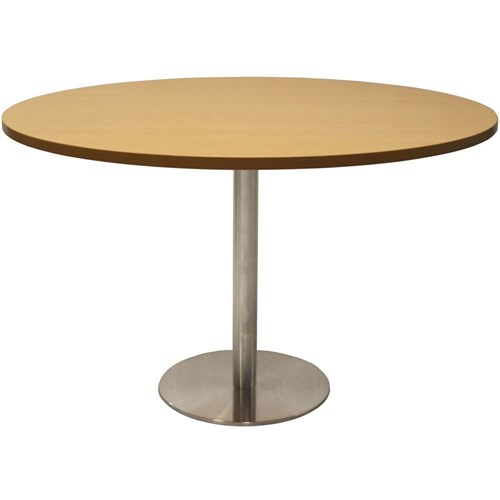 Rapidline Estillo Disc Base Round Table 1200D x 755mmH Oak Top Silver Base