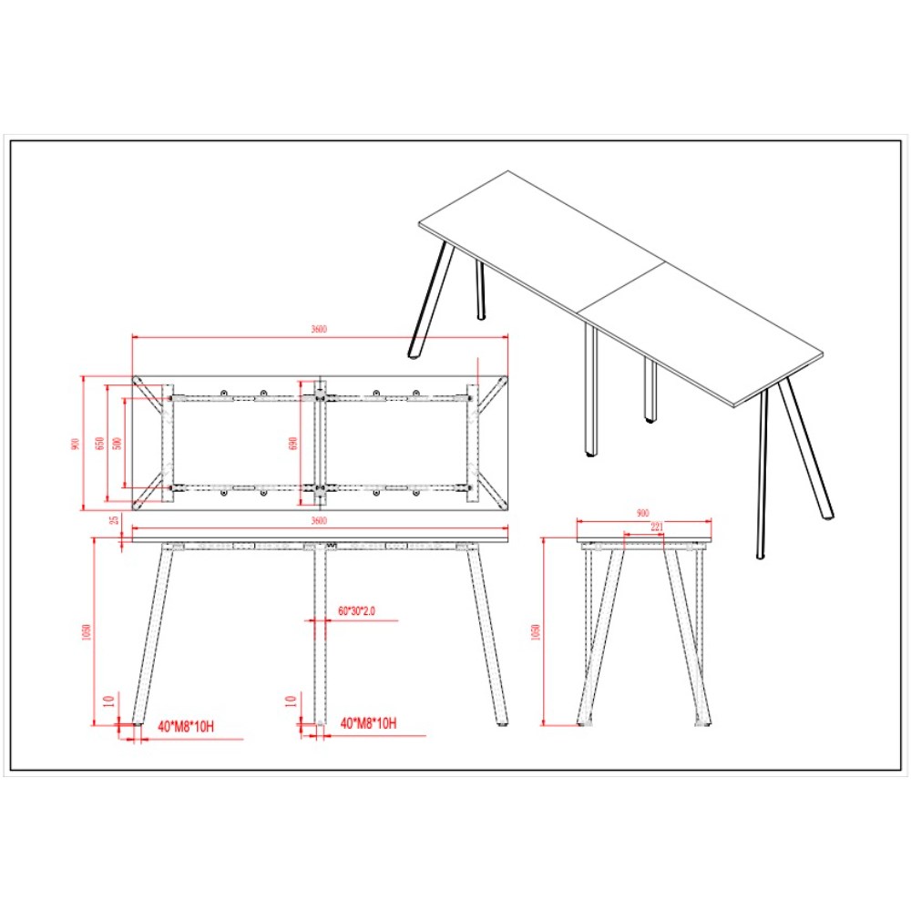 • Dimensions: 3600W x 900D x 1050mmH.