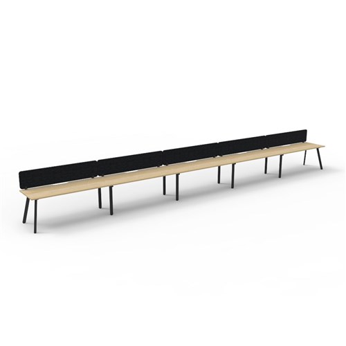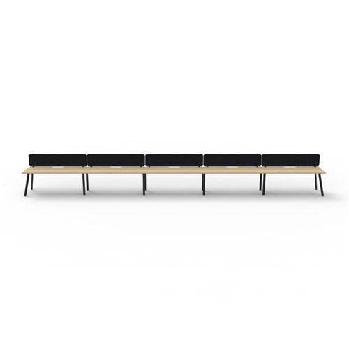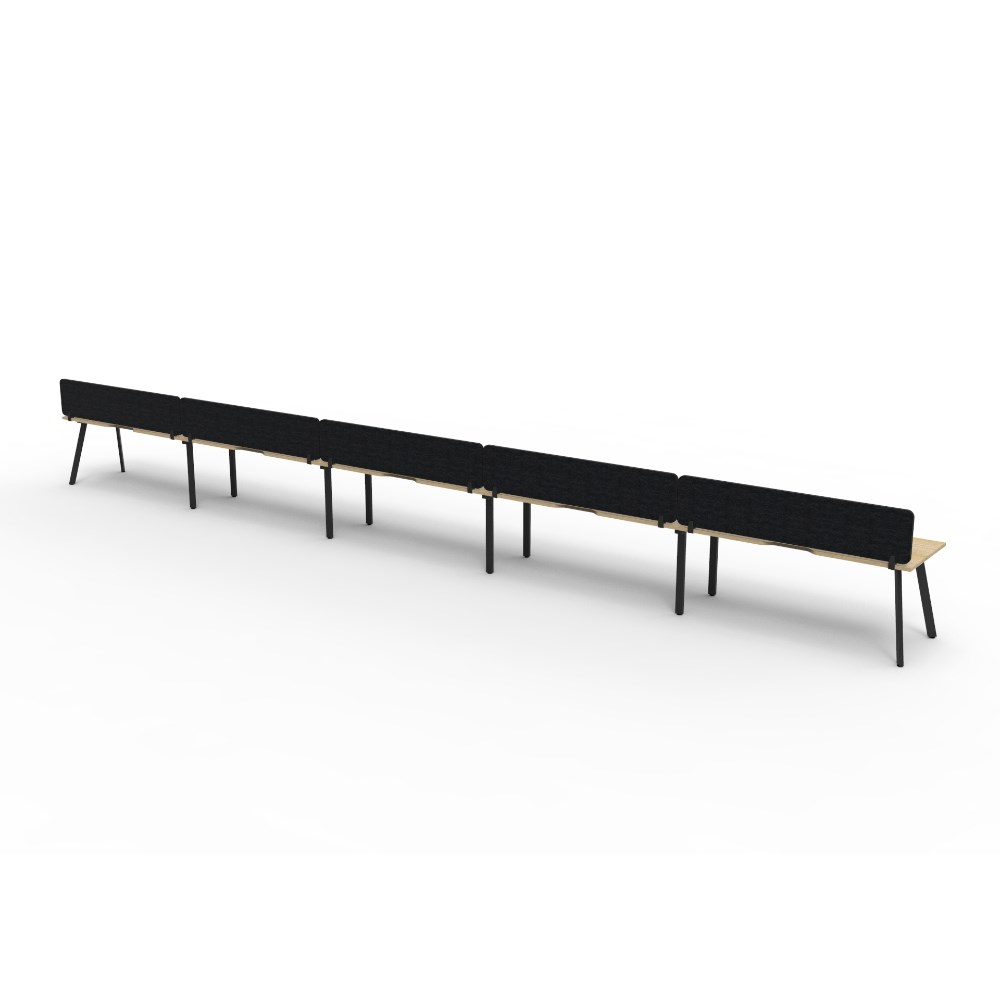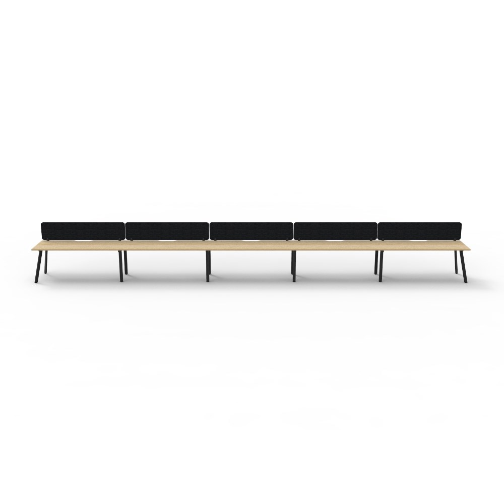 • 5 person single sided workstation with Natural Oak top and Black Satin frame, Black Eco screen.