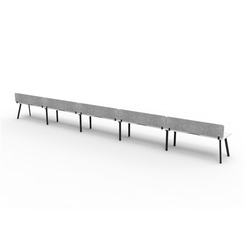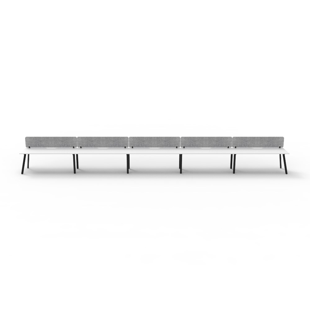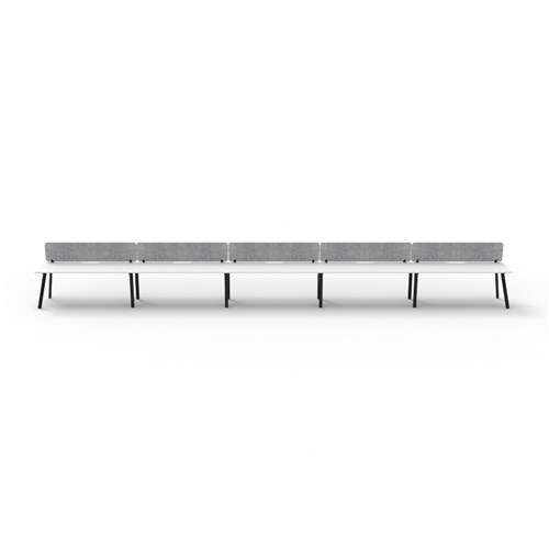 • 5 person single sided workstation with Natural White top and Black Satin frame, Grey Eco screen.