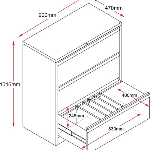 • Rapidline Go Lateral Filing Cabinet 3 Drawer 900W x 473D x 1016mmH Black