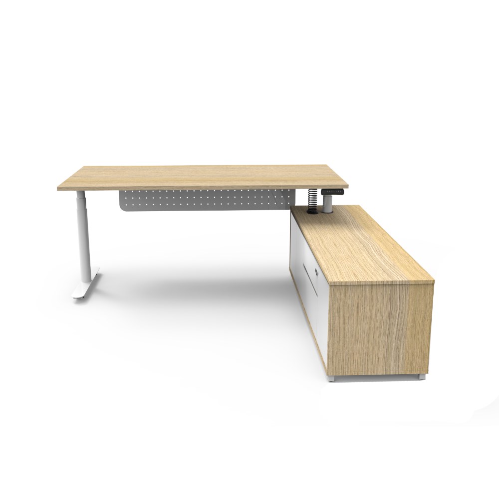 Rapidline Halo+ Executive Desk + RHS Cabinet + Panel 2020W x 2011D x 620-1270mmH Oak/White