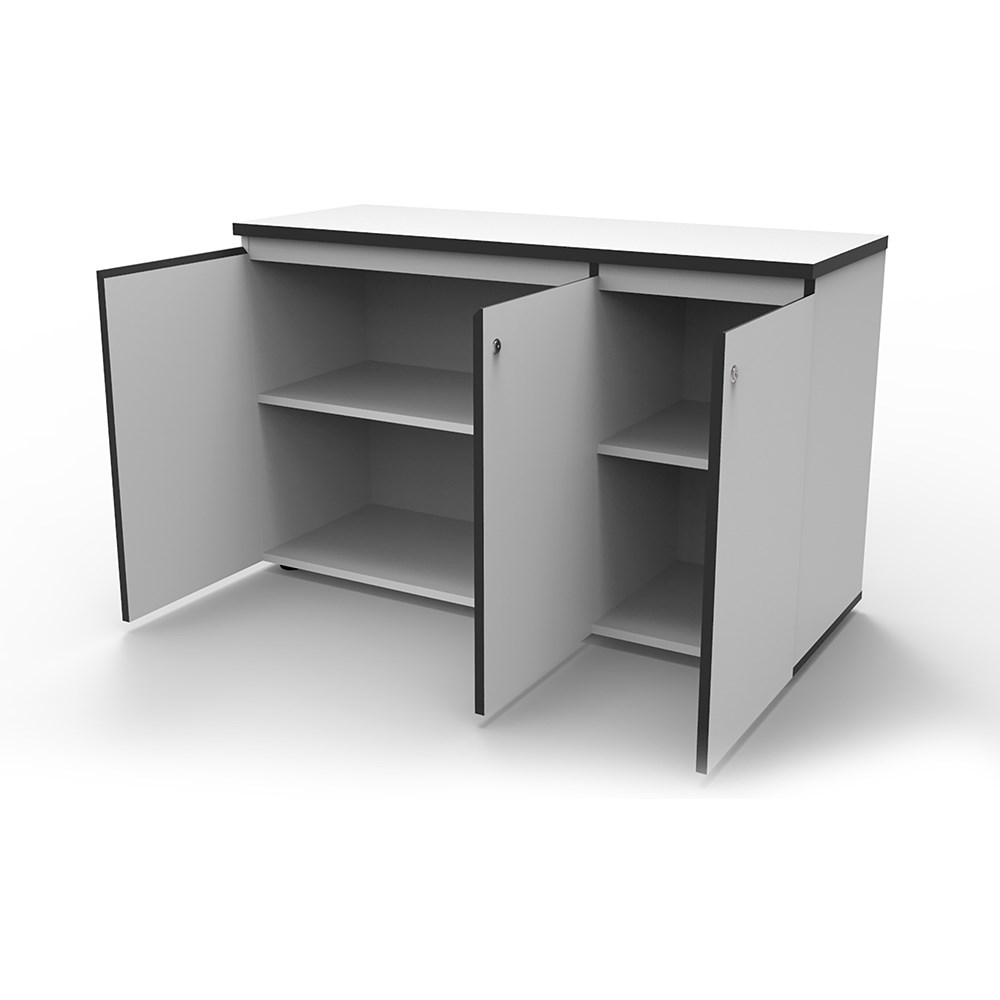 Rapidline Infinity Swing 3 Door Cupboard 1500W x 450D x 730mmH White With Black Edge