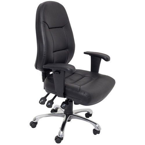 • Executive operator chair with high back and adjustable arms. Comes standard with a range of adjustments, seat and back tilt, seat slide for extra seat depth, and ratchet back for easy back height adjustment.