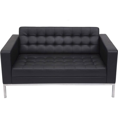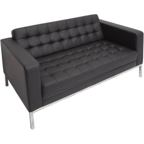 Rapidline Venus Double Sofa Stainless Steel Frame Button Finish Black PU Upholstery