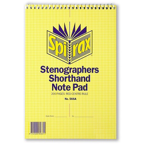 Spirax 566A Stenographers Shorthand Notebook 225 x 152mm Centre Rule 200 Page Top Open