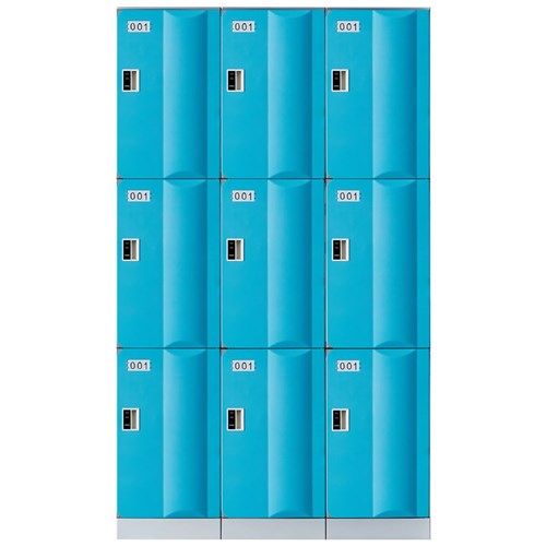 • Steelco ABS Plastic Locker 3 Door Bank Of 3 1146W x 500D x 1940mmH Assorted Colours