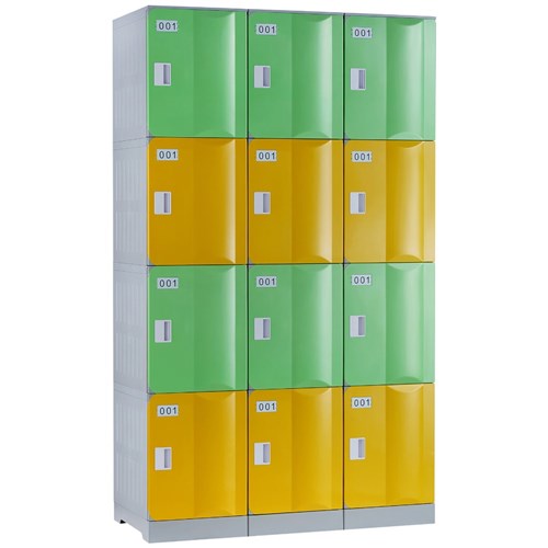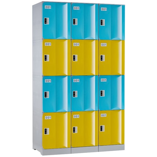 Steelco ABS Plastic Locker 4 Door Bank Of 3 1146W x 500D x 1940mmH Assorted Colours