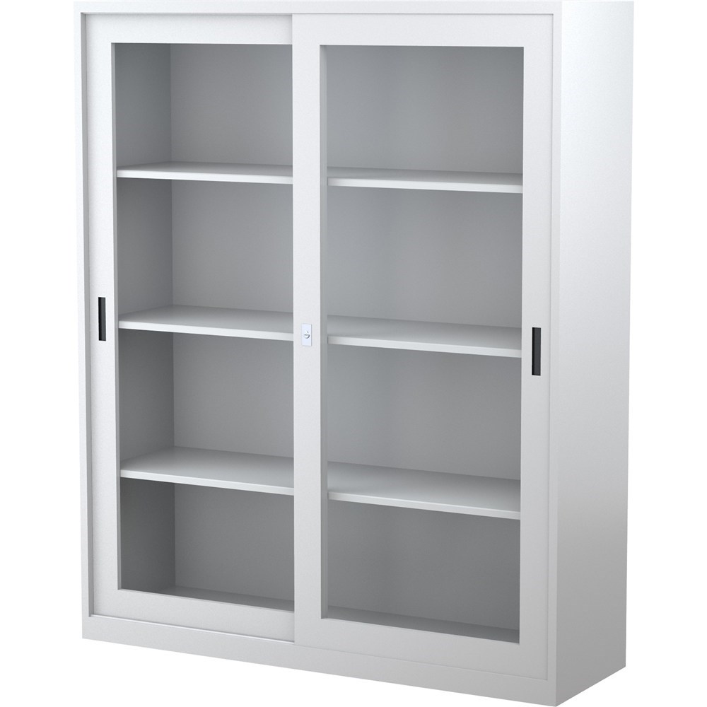 Steelco Sliding Glass Door Cupboard 3 Shelves 1500W x 465D x 1830mmH White Satin
