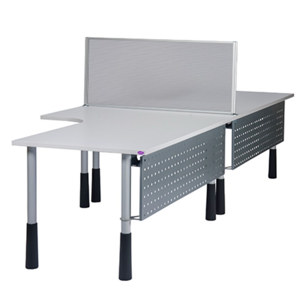 • A desk mounted divider which is fully framed in aluminium providing a lightweight yet strong frame that can support the panels without being overly bulky or heavy.