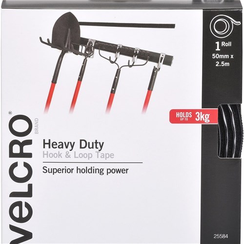 Velcro Brand Heavy Duty Hook & Loop 50mm x 2.5m Tape Black