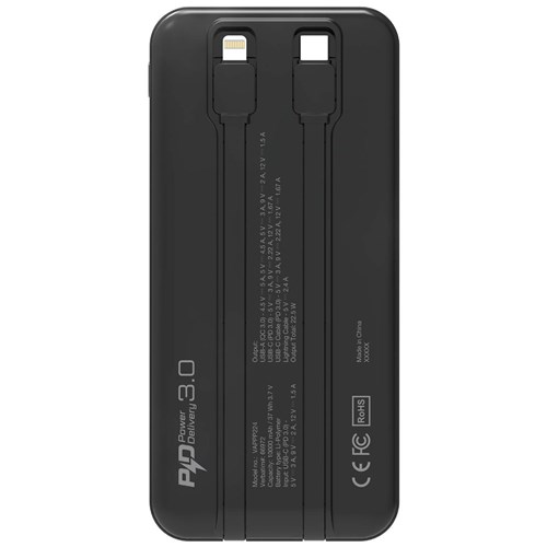 Verbatim Power Bank 10000mAh With Embedded Cables Black